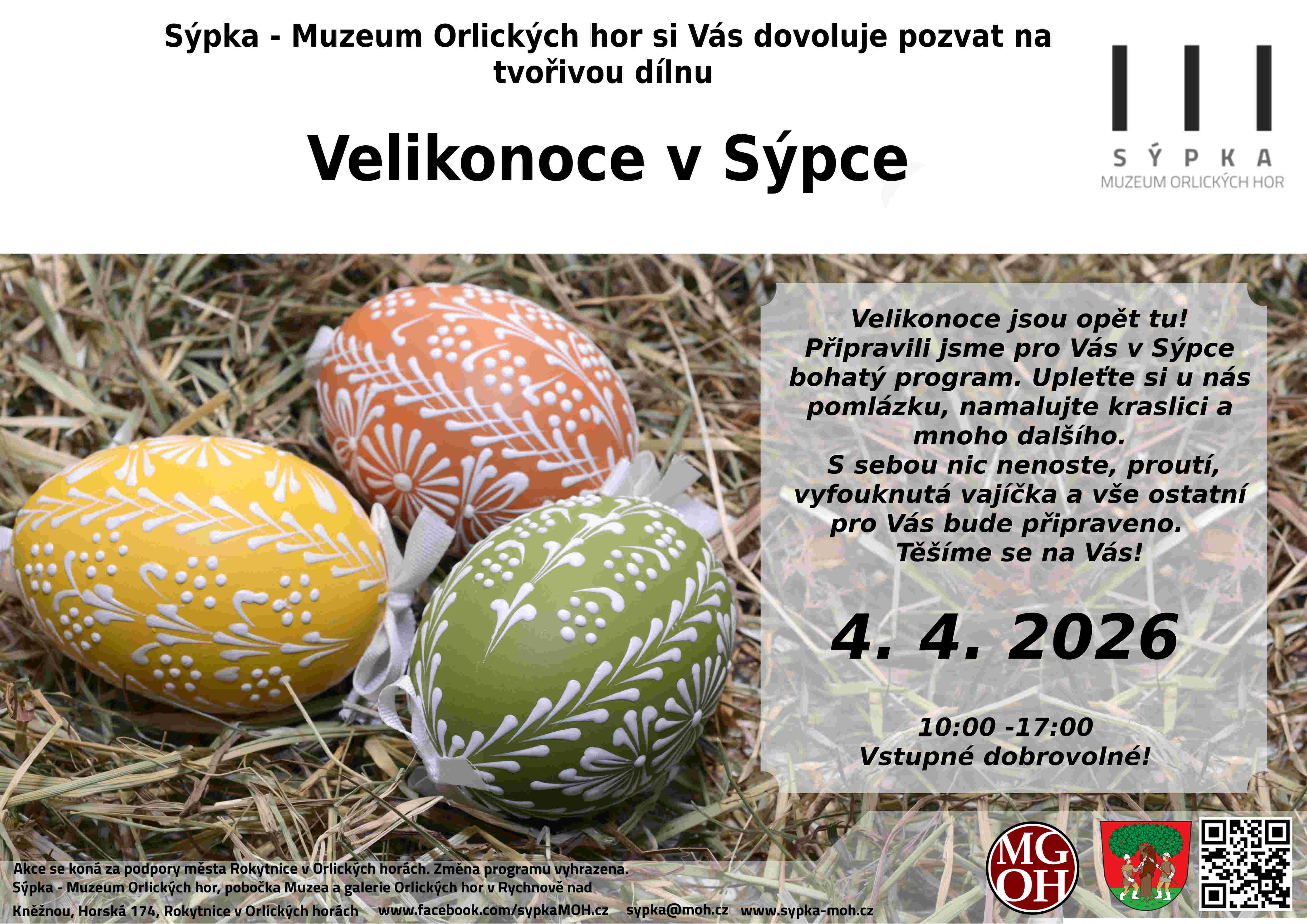 Oblíbený jarní program vycházející z velikonočních lidových tradic. Pletení pomlázek, malování kraslic různými technikami, velikonoční dekorace, drátkování a další.
